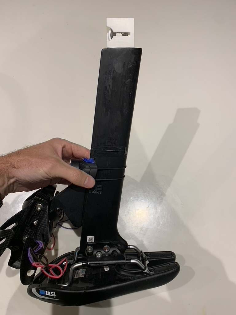 I designed and 3D printed a holder to fit within the seat post of the bike, which slides into the bike seat tube and remains concealed. There was an option of fixing the tag to the inside of the frame using an adhesive, however the tag requires its batteries to be replaced every ~12 months, so the requirement to be able to remove (easily enough) had to be inherent in the design.